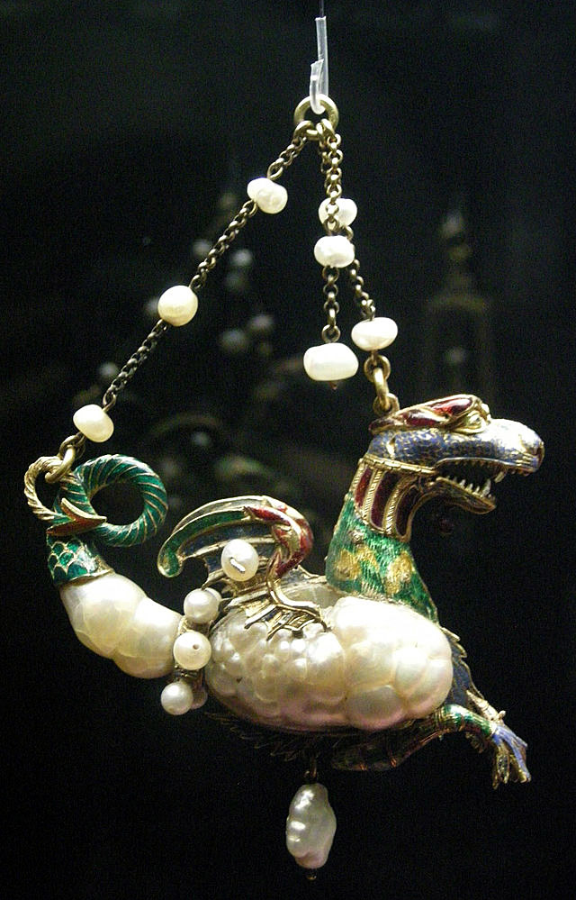 - Жемчуг: Жемчуг, особенно неправильной формы («барочный жемчуг»), был одним из самых любимых материалов эпохи․